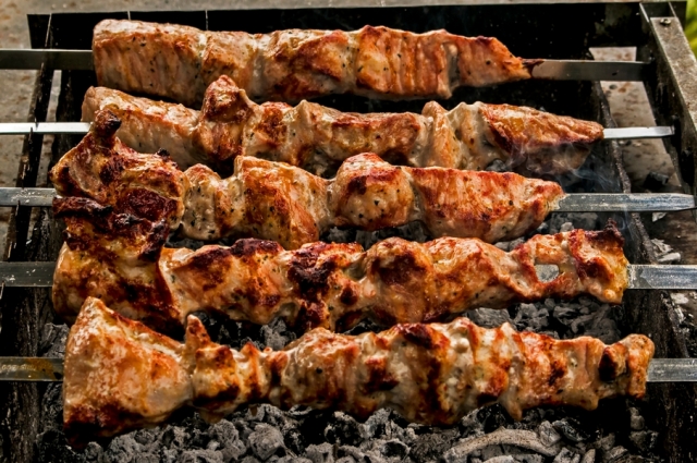 Когда шашлык готов, подайте его на стол. Можно украсить блюдо свежими овощами, зеленью и лимоном. Чтобы шашлык оставался сочным и не пересыхал, можно подлить его маслом или маринадом. Подливка придаст блюду дополнительный вкус и аромат. Приятного аппетита!